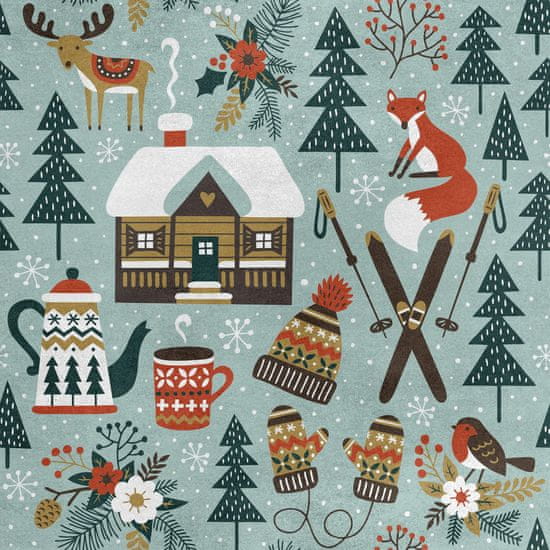 shumee Kraljevski žametni material iz poliestra za šivanje - motiv Zima v gozdu