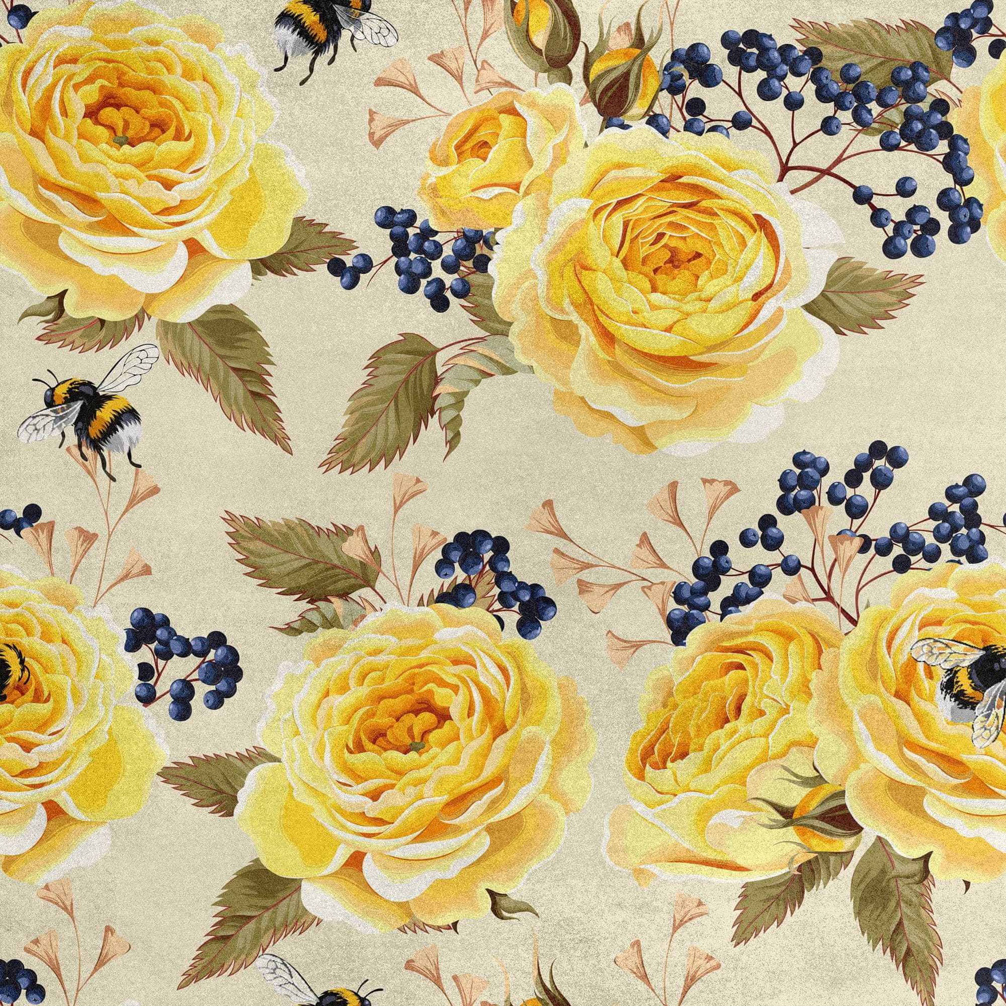 shumee Kraljevski žametni material iz poliestra za šivanje - motiv rumenih vrtnic