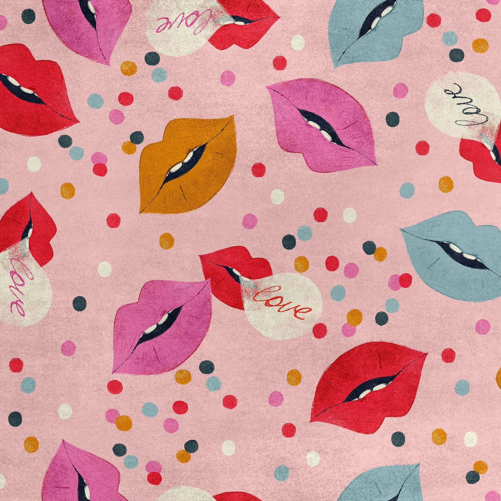 shumee Kraljevski žametni material iz poliestra za šivanje - motiv ustnic na roza barvi