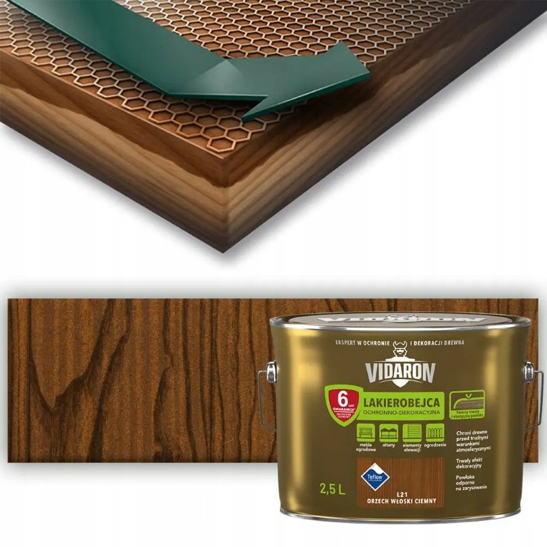 Lazurni lak za temni oreh 2,5 l Visokokakovosten zaščitni in dekorativni lazurni lak Vidaron ustvari trpežen in fleksibilen premaz, odporen proti obrabi, na lesu. Učinkovito ščiti les pred soncem (UV), vodo, snegom in zmrzaljo, hkrati pa ohranja naravno lesno teksturo. Prednosti in lastnosti izdelka 6-letna garancija za učinkovito zaščito Ščiti pred soncem (UV), vodo, snegom in zmrzaljo Dolgotrajen dekorativni učinek Premaz, odporen proti praskam Vsebuje teflonsko® zaščito površine Ustvari trpežen in fleksibilen premaz Parametri: Znamka: Vidaron Barva: Temni oreh L21 Prostornina: 2,5 l Izkoristek pakiranja: približno 20 m²/l Čas sušenja: 6 ur Orodje: Čopič, valjček, blazinica Zaključek: Sijajni Nanos: Dekorativno in zaščitno barvanje lesenih površin in materialov na osnovi lesa za uporabo v zaprtih prostorih in na prostem Cena velja za en kos