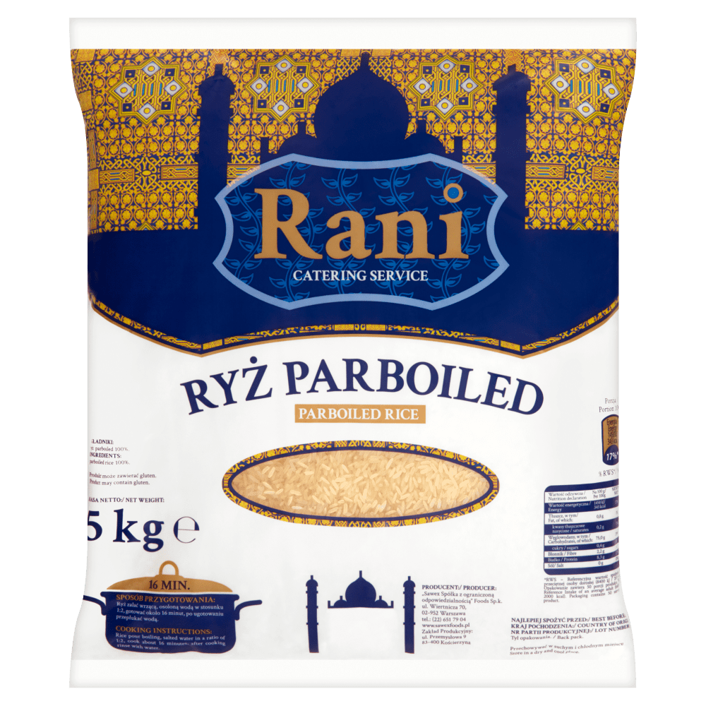 Parboiled riž Rani je posebej kuhan, kar ohrani vitamine in hranila v zrnu. Parboiled riž pridobi nežno, zlato barvo, izrazito aromo in nekoliko čvrstejšo strukturo. Prednost parboiled riža je njegova rahla in puhasta tekstura. Parboiled riž Rani je idealen dodatek k vsem vrstam pečenk, ocvrtih in poširanih rib ter zelenjavnih jedem. Je tudi odlična sestavina v solatah in sadnih sladicah.