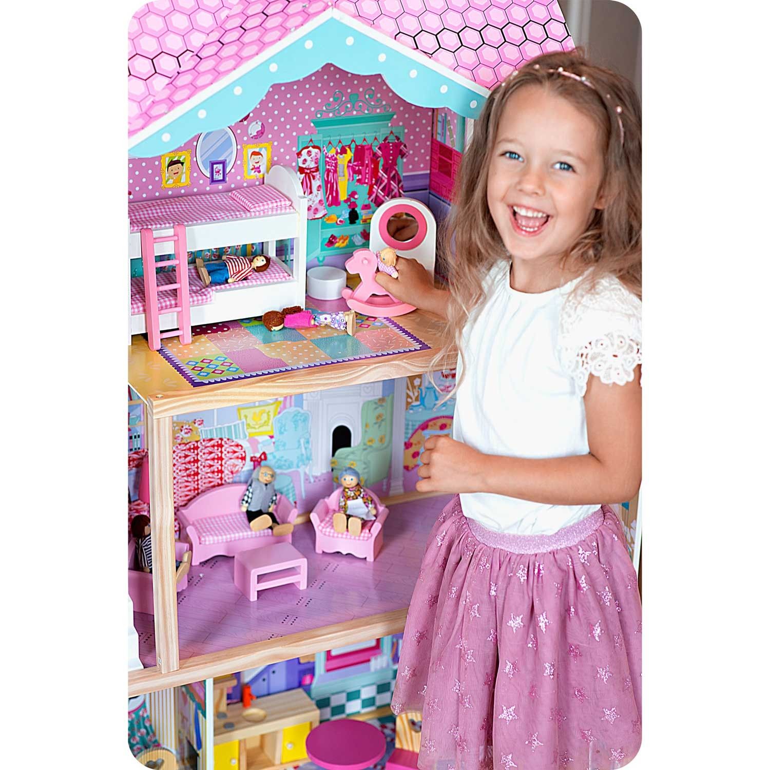Lesena hišica za punčke Ricokids 120 × 82 × 33 cm Ta hiša za punčke je popolno darilo! Ta hiša s svojimi čudovitimi barvami in veliko lesenega pohištva bo zabavala vašega otroka!