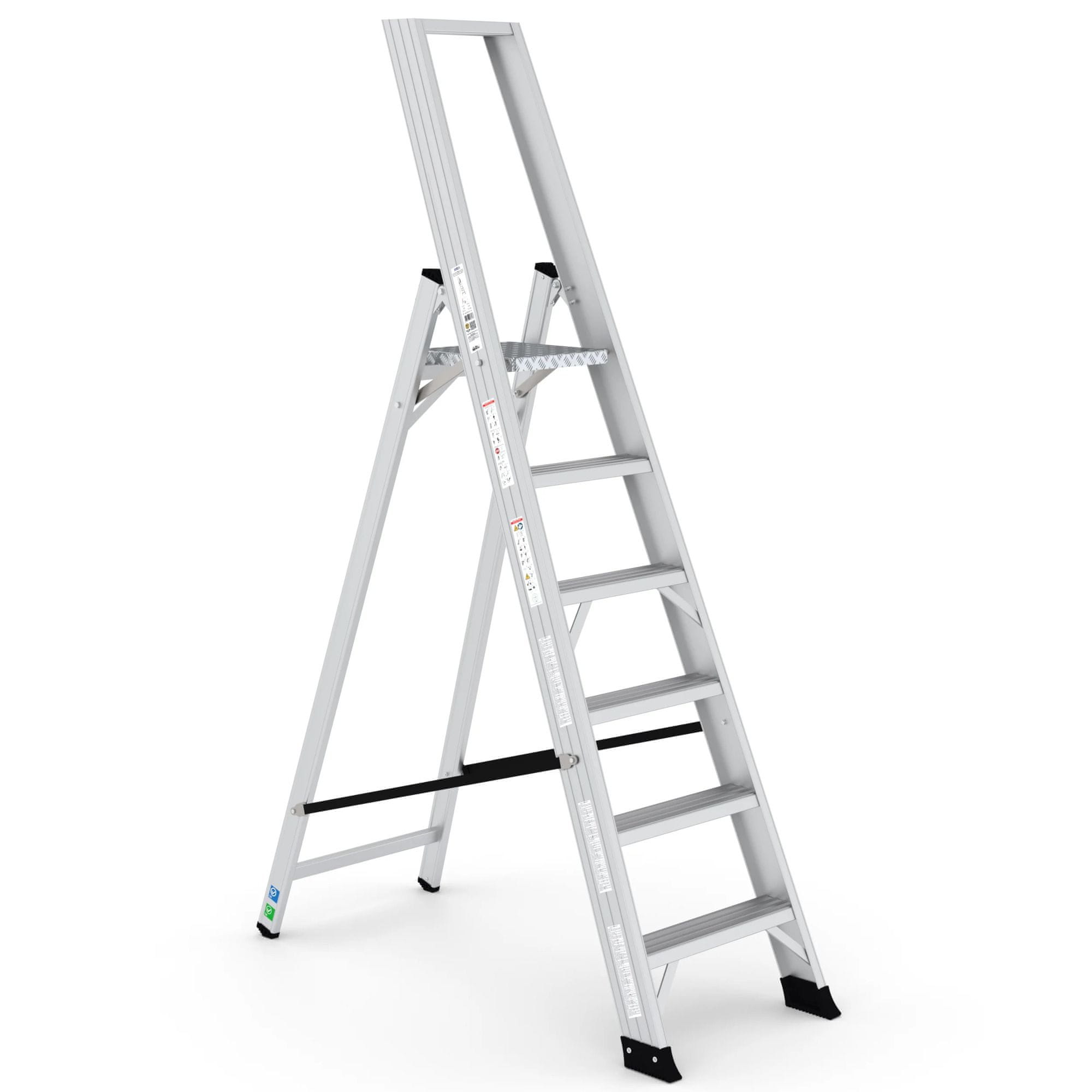 - Izboljšana učinkovitost: s priročnim pladnjem za orodje in ergonomsko zasnovo lestev poveča učinkovitost in potek dela ter podpira brezhibno dokončanje nalog.