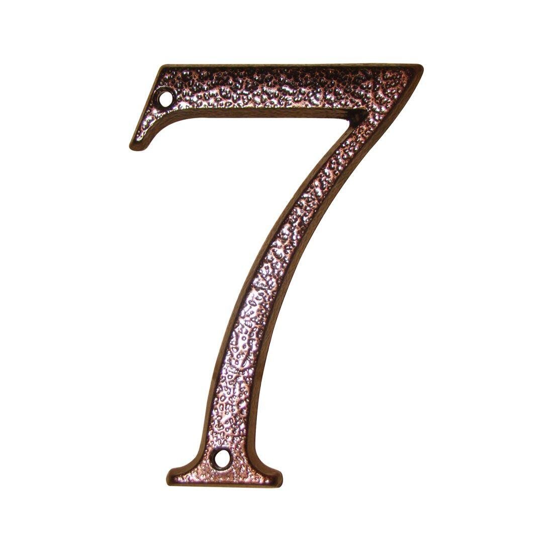 Hiša številka 7 rjave barve Tablica s hišno številko je izdelana iz trpežne zlitine cinka. Številka je dobro čitljiva, lahko jo je prati in je odporna na vremenske vplive. V višino meri 12 cm. Celoten opis