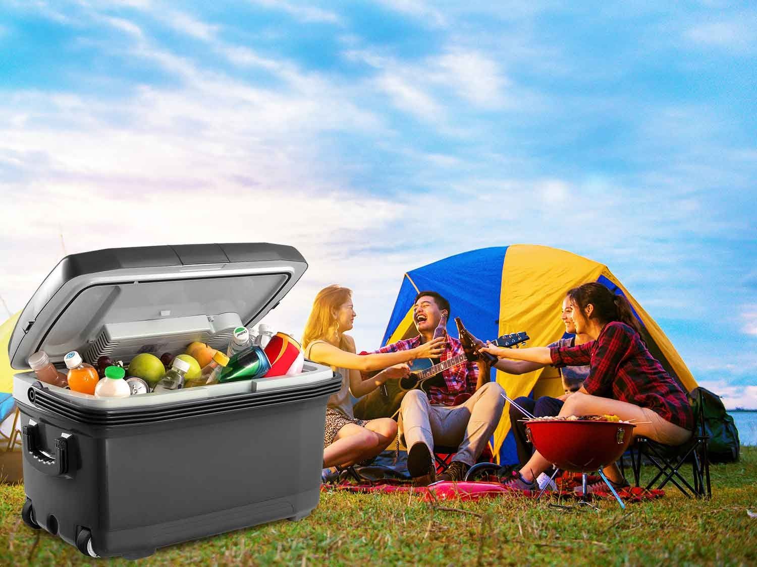 Potovalni hladilnik je idealen za na plažo, kampiranje ali poletno hišo. Zahvaljujoč dvema vgrajenima ventilatorjema se bodo izdelki v komori enakomerno ohladili. Dvostensko ohišje zagotavlja odlično toplotno izolacijo, naprava pa lahko deluje na napetosti 230 V in 12 V. Poleg načina hlajenja je hladilnik opremljen tudi z načinom ogrevanja, kar je izjemno uporabno za ohranjanje toplote že pripravljenih jedi.