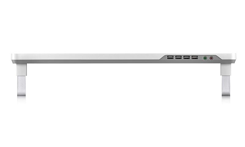 DEEPCOOL M-DESK F1 je robustno stojalo iz aluminijeve zlitine z nastavljivo višino (7,5 ali 10,4 cm), 4× USB 2.0 priklopi ter audio vhodi za slušalke in mikrofon. Nosilnost do 10 kg, primerno za prenosnike do 27". Dimenzije: 550 × 230 × 24 mm, teža: 1098 g. Celoten opis