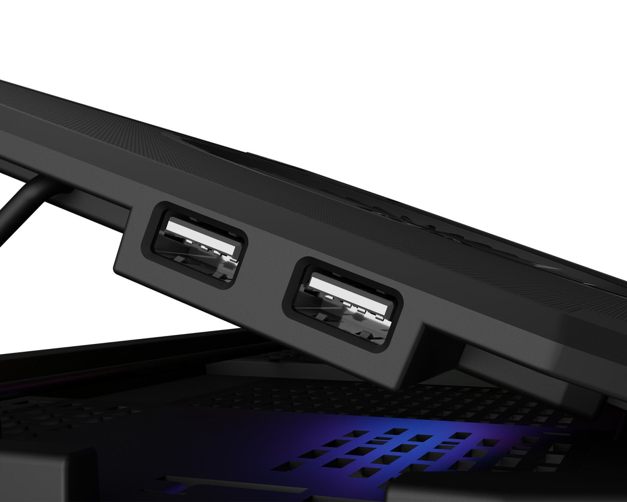 Stojalo je opremljeno z učinkovitim in varnim hladilnim sistemom, ki temelji na štirih majhnih ventilatorjih, ki odvajajo toploto izpod prenosnika in enem glavnem ventilatorju, ki dovaja hladen zrak v prenosnik.