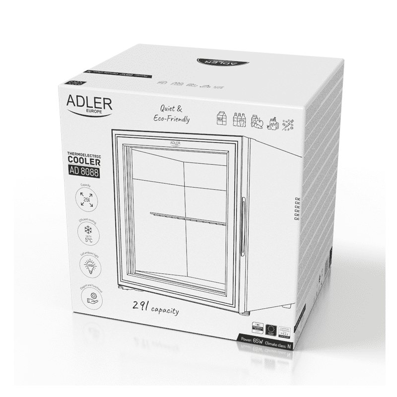 S termoelektričnim hladilnikom Adler AD 8088 ohranjajte svoje pijače in prigrizke na popolni temperaturi. S svojim modernim dizajnom in funkcionalnostjo je naprava idealna za vsak interier – od kuhinje do pisarne ali celo hotelske sobe.