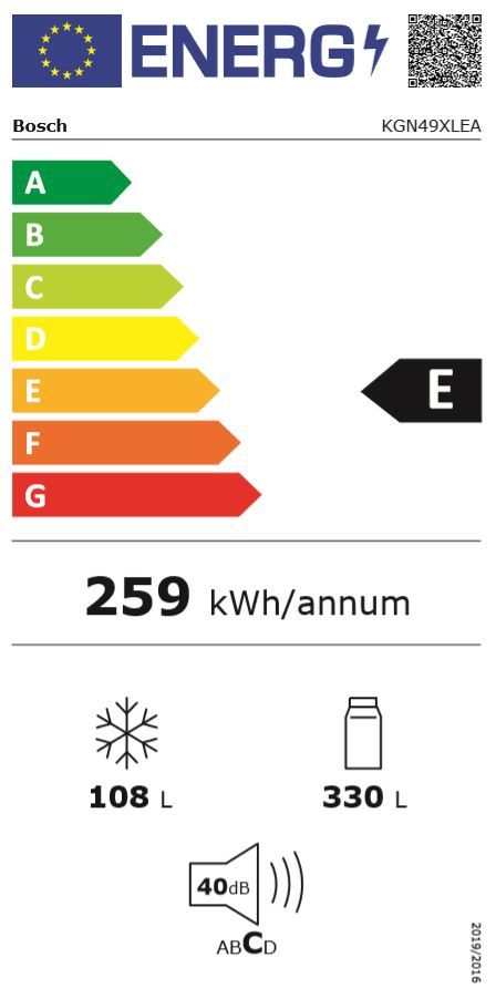 Prostostoječi hladilnik z zamrzovalnikom na spodnjem delu se uvršča v energijski razred E in ima skupno prostornino 438 litrov. Prostornina hladilnega dela znaša 330 litrov, prostornina zamrzovalnega pa 108 litrov. Odlikujejo ga številne priročne funkcije, med katerimi so tudi VarioZone predali, izvlečne police za lažji dostop in boljši pregled nad hrano, dva hladilna krogotoka ter možnost super zamrzovanja.