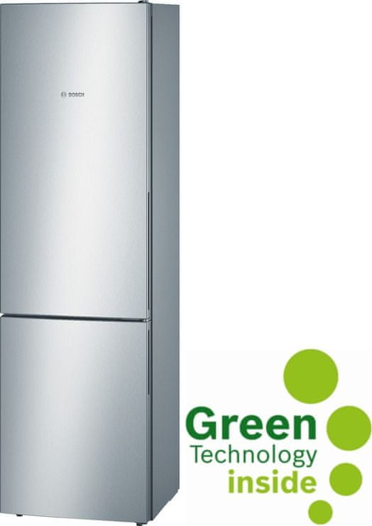 Bosch KGV39VL30S je prostostoječi hladilnik z zamrzovalnikom, ki spada v energijski razred A++. Prostornina hladilnega dela znaša 250 litrov, ponuja pa 5 steklenih polic (ena je odstranljiva), 4 police na vratih, kromirano polico za steklenice in prozorna posoda za zelenjavo CrisperBox, ki ustvari optimalne pogoje za shranjevanje živil in ohranitev njihove vrednosti v največji možni meri. V tem predalu sadje in zelenjava ne ležita več popolnoma ravno in neposredno na dnu posode zato ni neposrednega stika s kondenzirano vodo. Zelenjava je neprestano obdana s svežim zrakom in zato neprimerno dlje obdrži svojo svežino in kakovost.