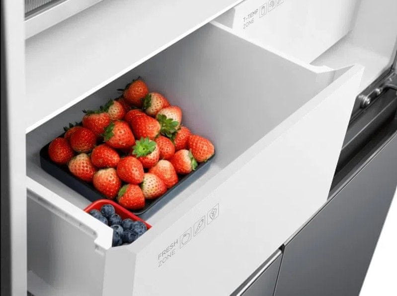 T-temp funkcija omogoča, da nastavite eno izmed 3 temperaturz enim pritiskom na elektronski plošči. Tako lahko poskrbite, da ohranite svežino in teksture različnih živil s pomočjo ustvarjanja idealnega okolja. Poleg tega izpolnjuje zahteve tistih, ki morajo shraniti različne vrste hrane v velikih količinah.