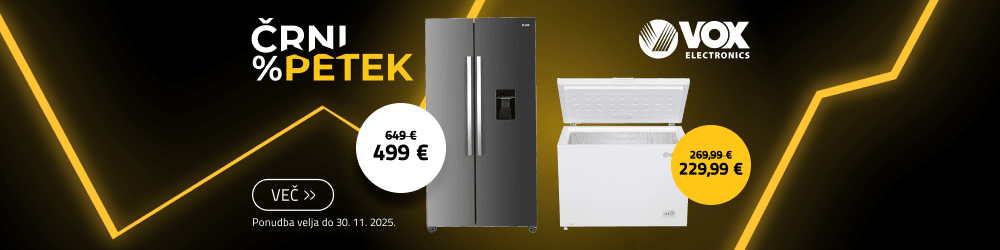 Vox ameriški prostostoječi hladilnik nudi 439 l prostora za shranjevanje živil. Spada v energijski razred E in se ponaša s sistemom NoFrost ter elektronskim upravljanjem na LCD zaslonu.