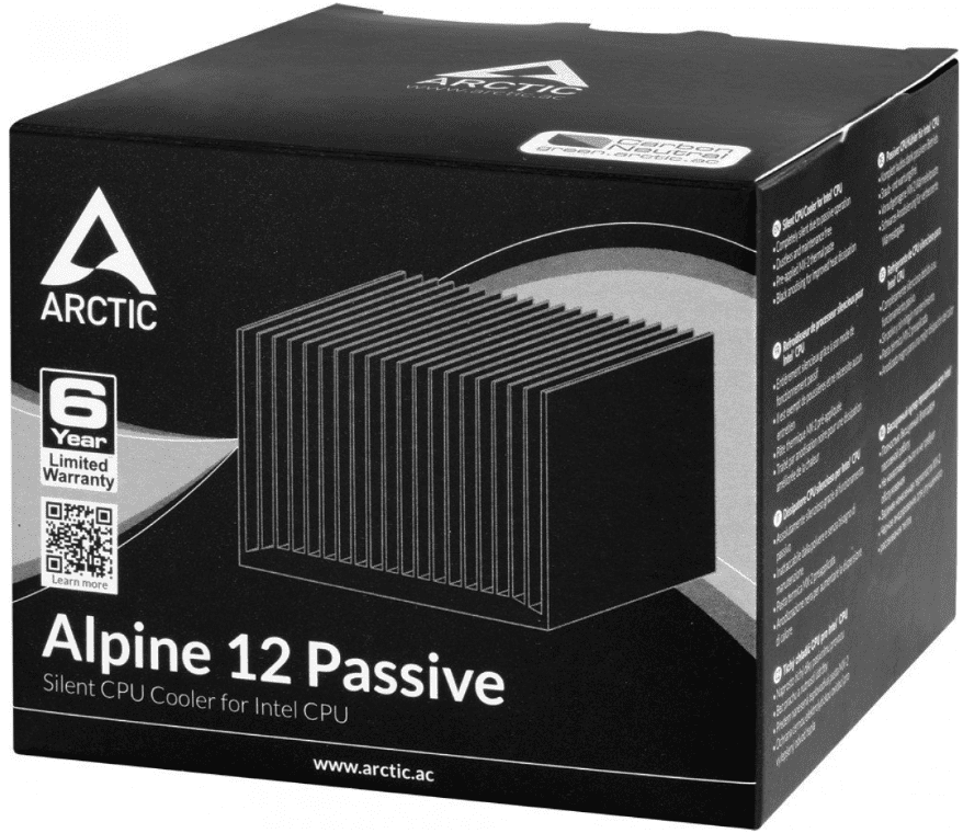 Alpine 12 Passive je brez ventilatorja, vendar zagotavlja dovolj moči, da ohrani vse združljive procesorje Intel do 47 W. Ponuja cenovno ugodno rešitev za popolnoma brezventilatorske računalnike z vtičnicami Intel 115X.