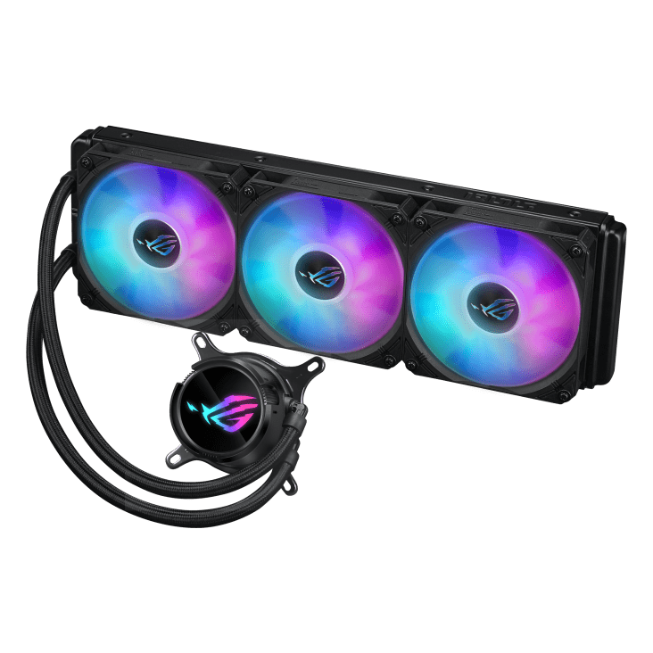 - Vodno hlajenje procesorja s tremi 120 mm ROG ARGB ventilatorji.