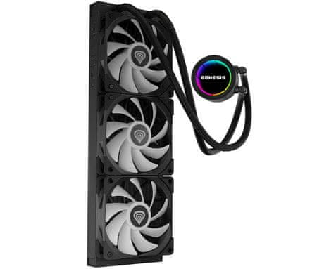 Genesis HYDRIA 360 vodno hlajenje, All-In-One, 360mm, 3x 120mm PWM ventilator, LED osvetlitev, +dodatki za namestitev, črni