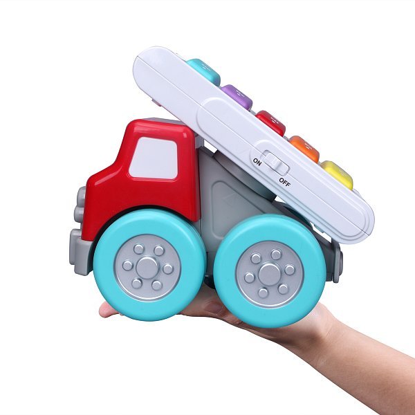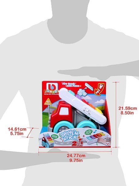 Gasilski avto s klavirjem Drive 'N Rock 2v1. Pisan gasilski avto s snemljivim klavirjem. Klavir ima dva različna načina igranja, prednastavljene melodije ali možnost prostega igranja. S tem avtomobilom lahko Rock 'N Roll vnesete v otroško sobo in jih naučite ne le igrati glasbo, temveč tudi spodbujate razvoj njihove koordinacije rok in oči. Avtomobil je primeren za otroke od 12. meseca dalje. Avtomobil poganjata dve bateriji AAA, ki sta priloženi v paketu. Velikost avtomobila je 20,06 cm (7,9"), velikost paketa: 21,6 × 24,8 × 14,6 cm.