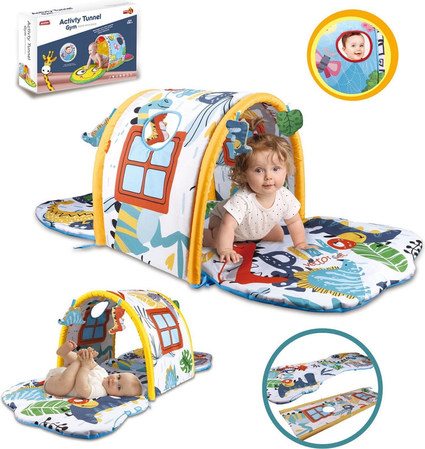 Razvija domišljijo in spretnosti vključevanja za igro vlog, spodbuja koordinacijo rok in oči ter razvoj grobe motorike, spodbuja socialno igro in ustvarjalnost, ponuja varno in zanimivo okolje za igro, otroku pomaga odkrivati nove oblike in barve, hkrati pa zagotavlja varnost in udobje med vsako igro, Dimenzije: 134 × 50 × 48 cm.