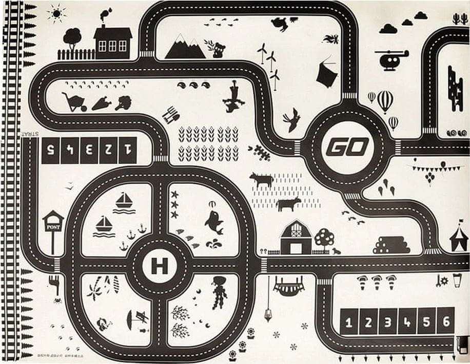 Vodoodporna izobraževalna podloga za otroke, ki sanjajo o lastnem mestu z ulicami, po katerih lahko vozijo svoje najljubše avtomobile.