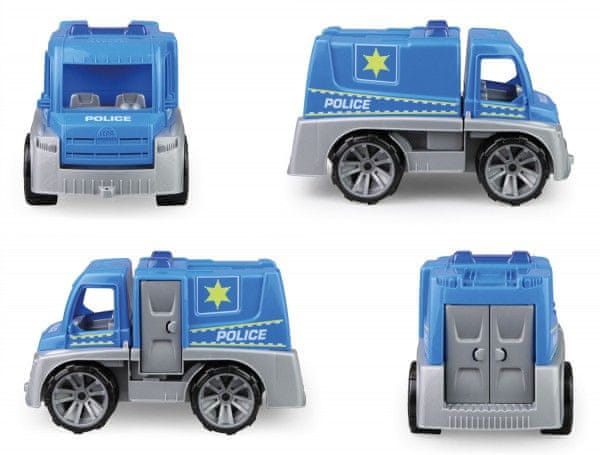 Policijski avto Truxx je izdelan iz visokokakovostne plastike in ima zelo trdno konstrukcijo. Popolnoma mehansko funkcionalen z aktivno lutko. Pakiran v okrasni kartonski škatli. Primeren za dečke od 2. leta starosti dalje.