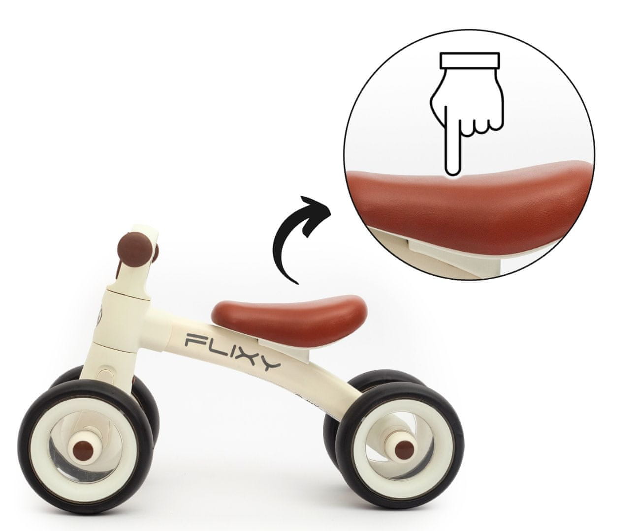 FLIXY se odlikuje po elegantnem dizajnu v umirjenih barvah, ki bo všeč tako otrokom kot staršem. Je odlična izbira za malčke, ki šele začenjajo svojo pustolovščino s kolesnimi vozili, pa tudi odličen način za spodbujanje telesne aktivnosti skozi igro.
