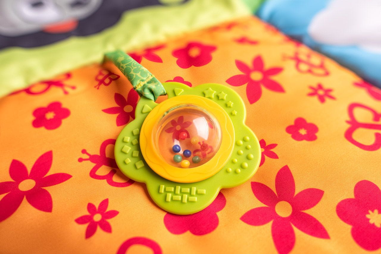 Prostorna igralna odeja v slogu patchwork ponuja številne igralne dejavnosti, ki so vključene v posamezne slike. Cvetni listi, pasja ušesa, mačji rep in zeleni šop trave šumijo, ko jih podajamo naokrog. Slonovo oprsje in ropotulja imata vgrajeno piskalo. Okrasni lističi zelene rože v obliki ropotuljice so tudi grizalo. Ko odgrnete krošnjo rumenega drevesa, odkrijete varnostno ogledalo, v katerem lahko otrok vidi svoj obraz in se z veseljem odzove. To avtorsko delo je registrirano pri Art&Copyright pod številko 200–16–20–1 z dne 10. 11. 2020. https://www.youtube.com/watch?…