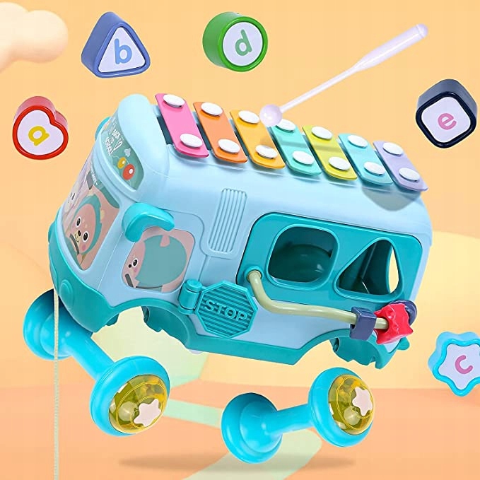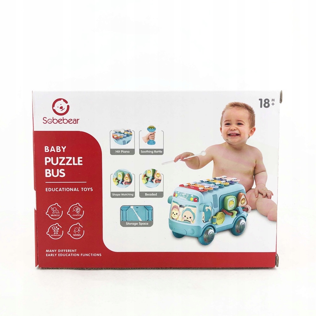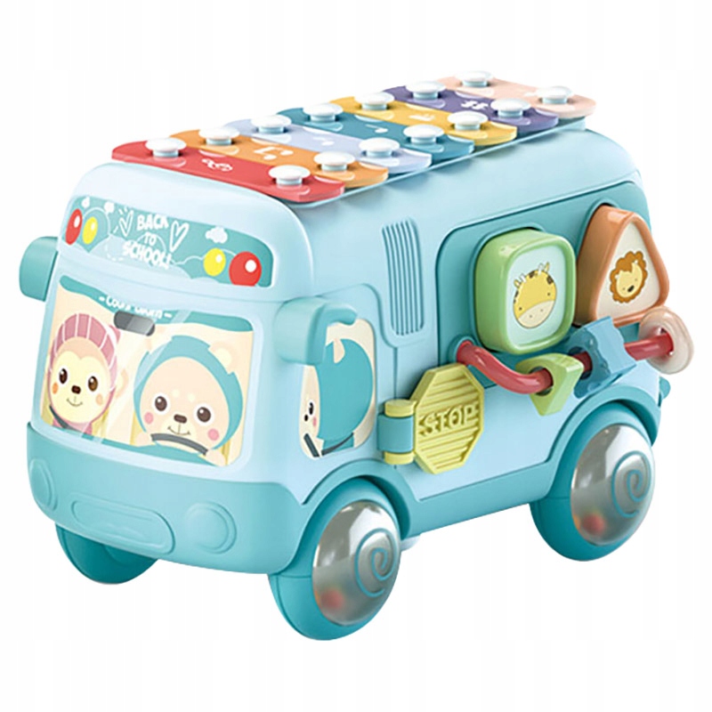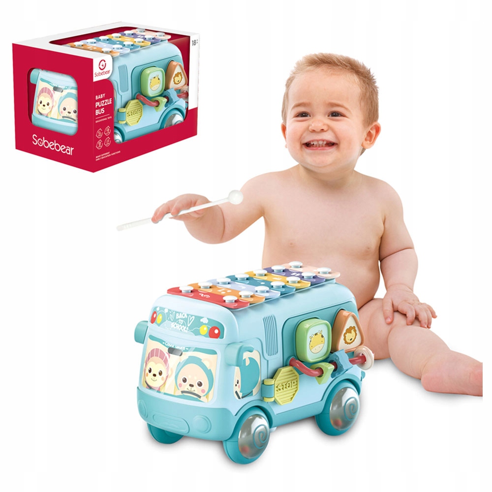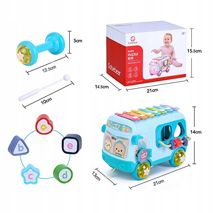 Interaktivni avtobus s sorterjem, činelami in ropotuljicami je odlična izobraževalna igrača za vašega malčka, ki razvija njegove ročne spretnosti.