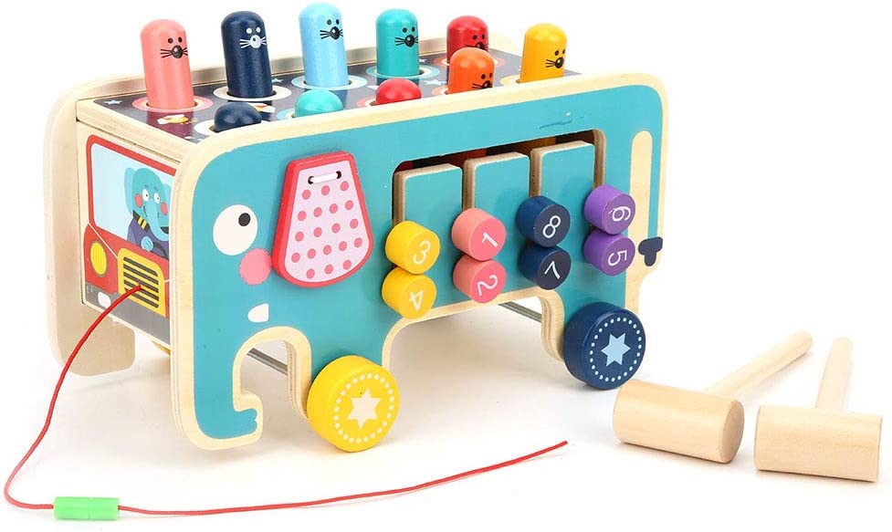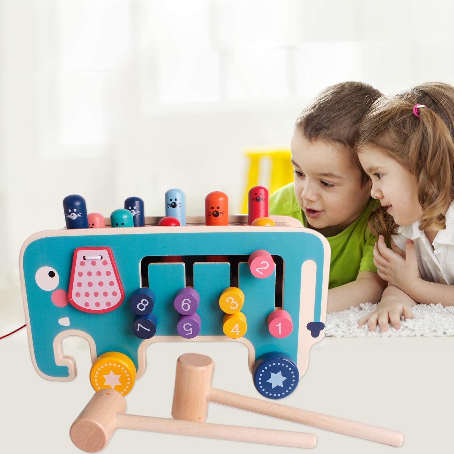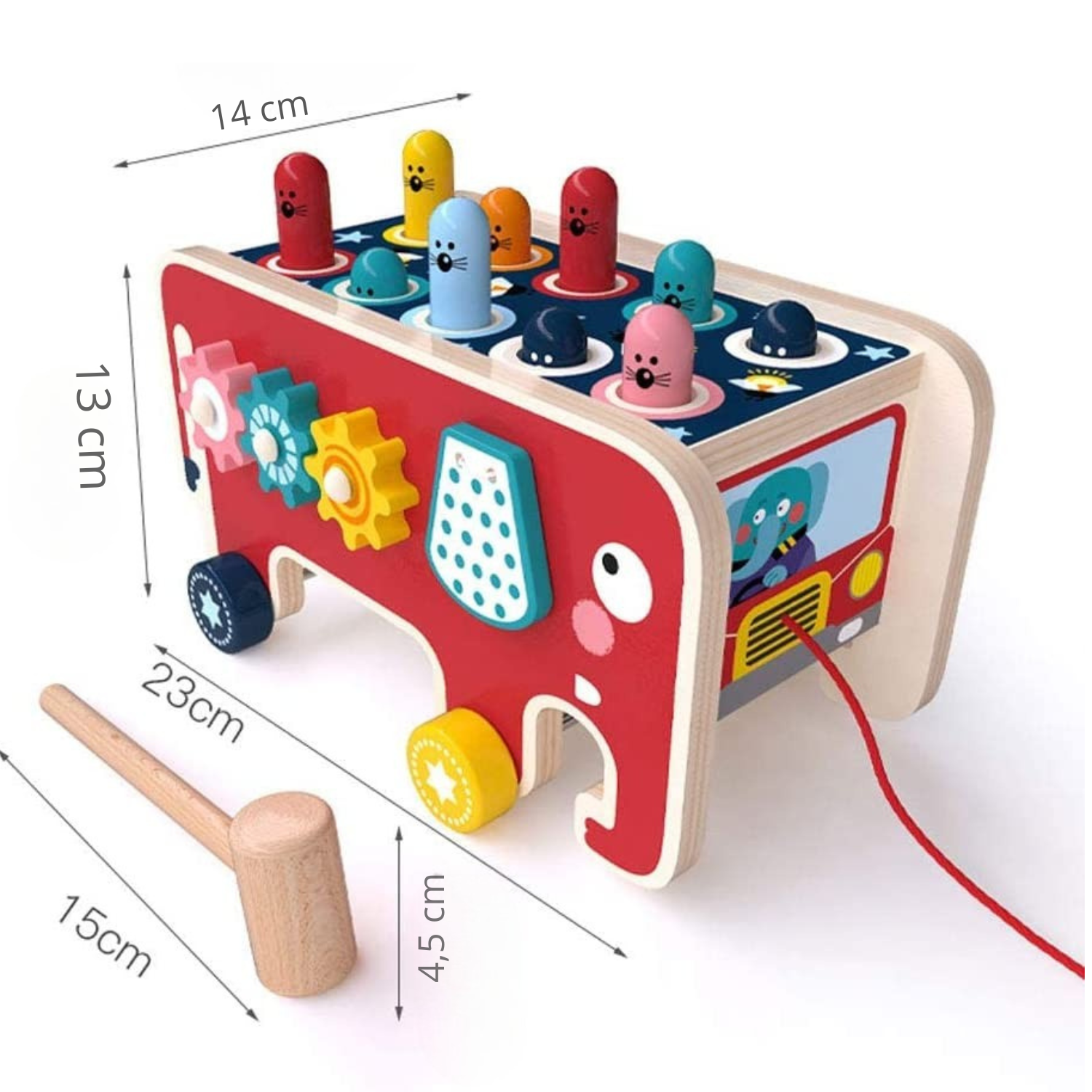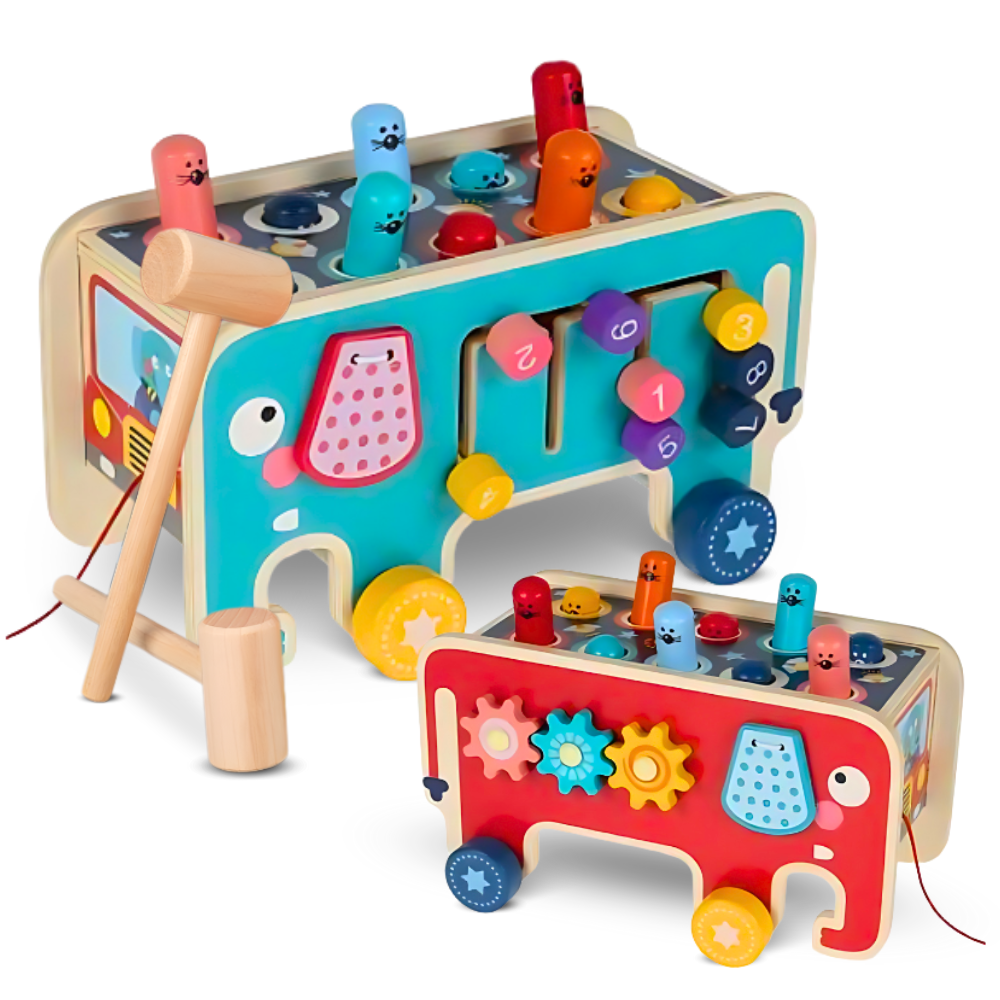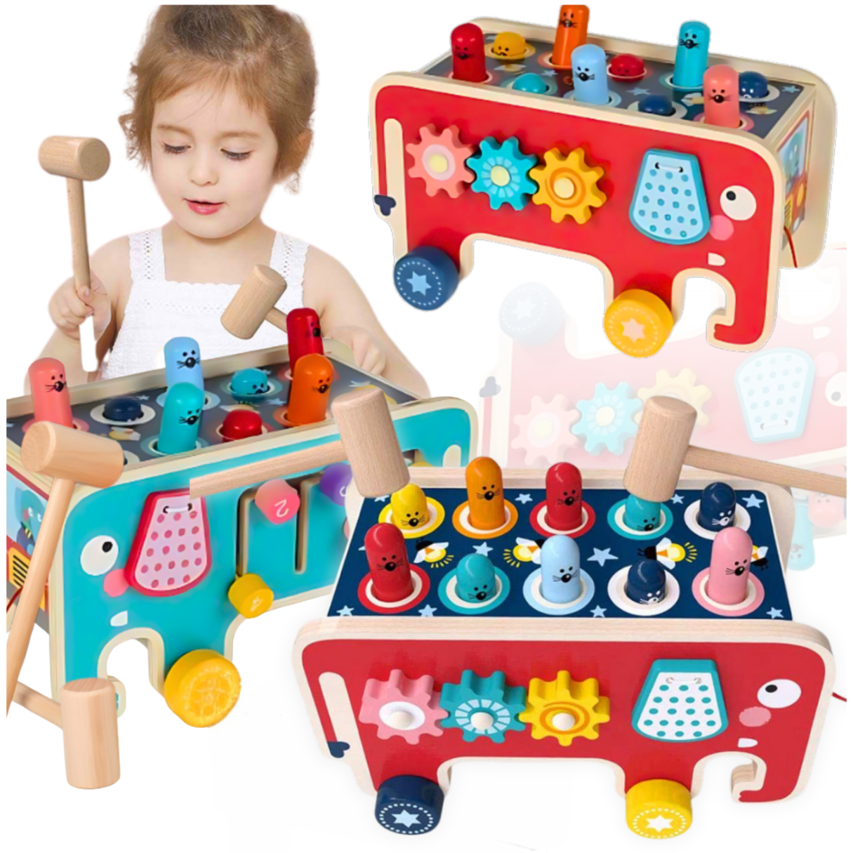 Razvija motorične sposobnosti – vaš otrok mora natančno ciljati in tolči kocke v luknje, kar razvija njihovo ročno spretnost in motorično koordinacijo. ✨ Uči barve in oblike – kocke v različnih barvah in oblikah