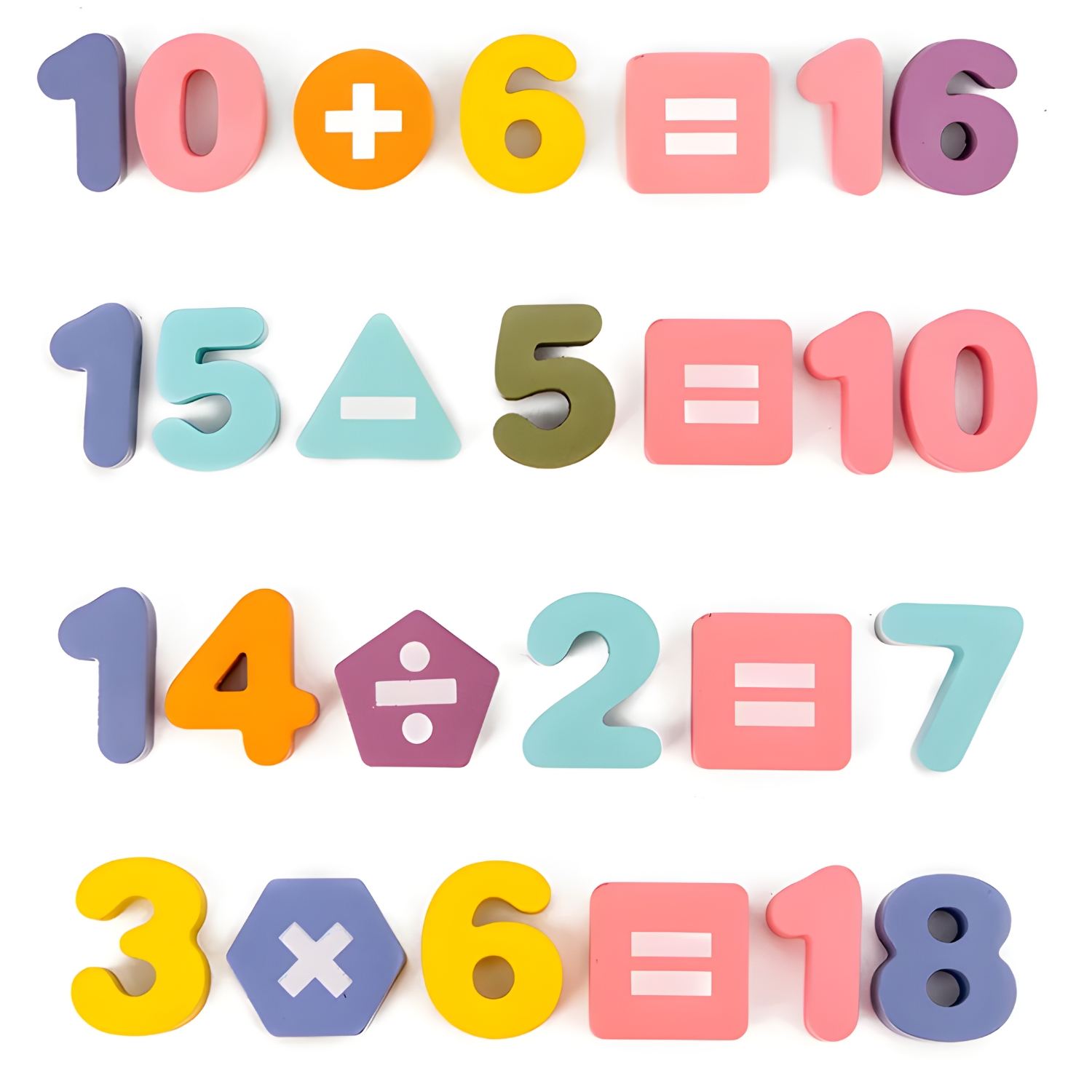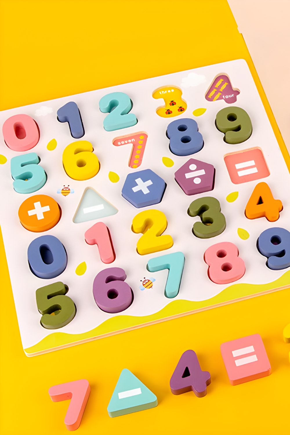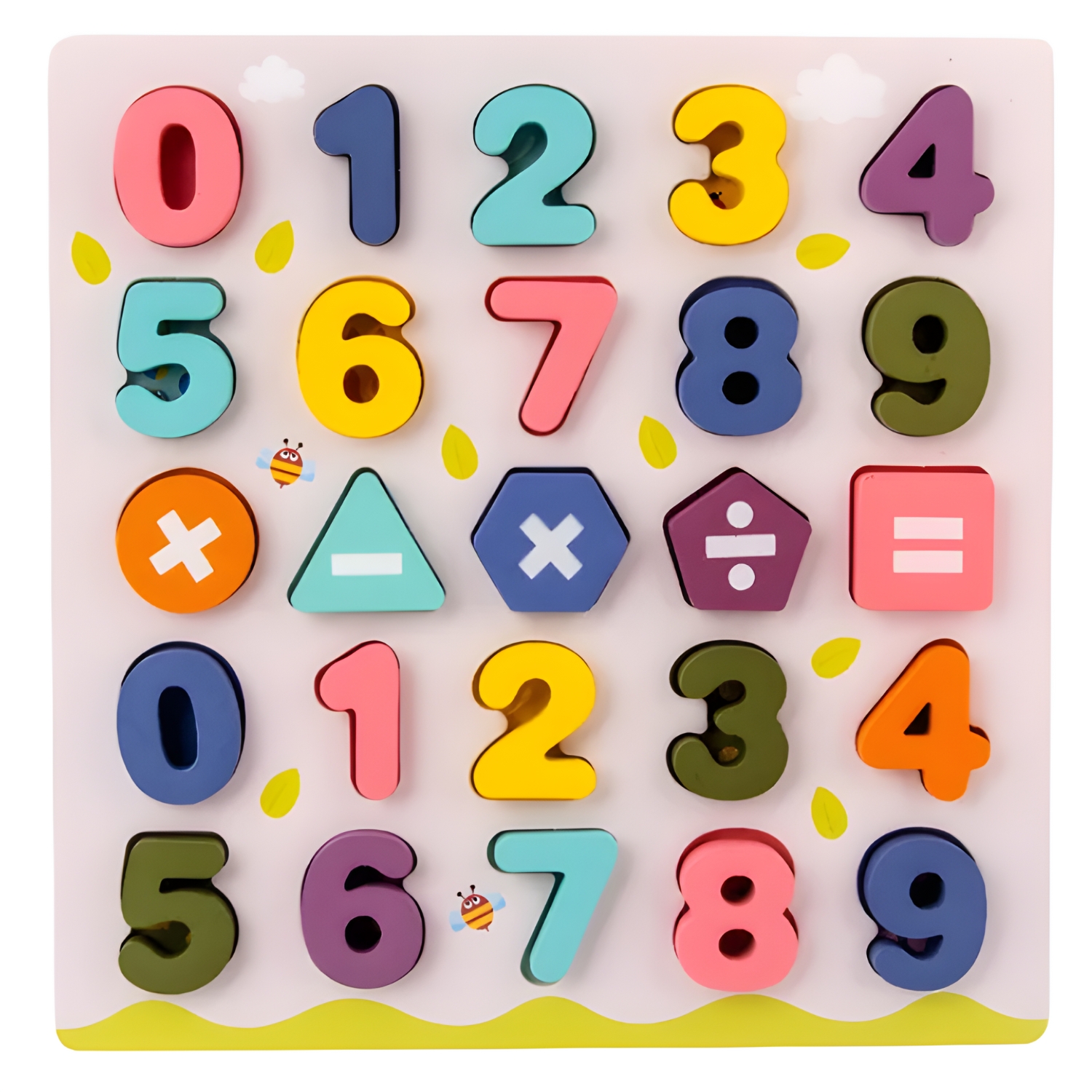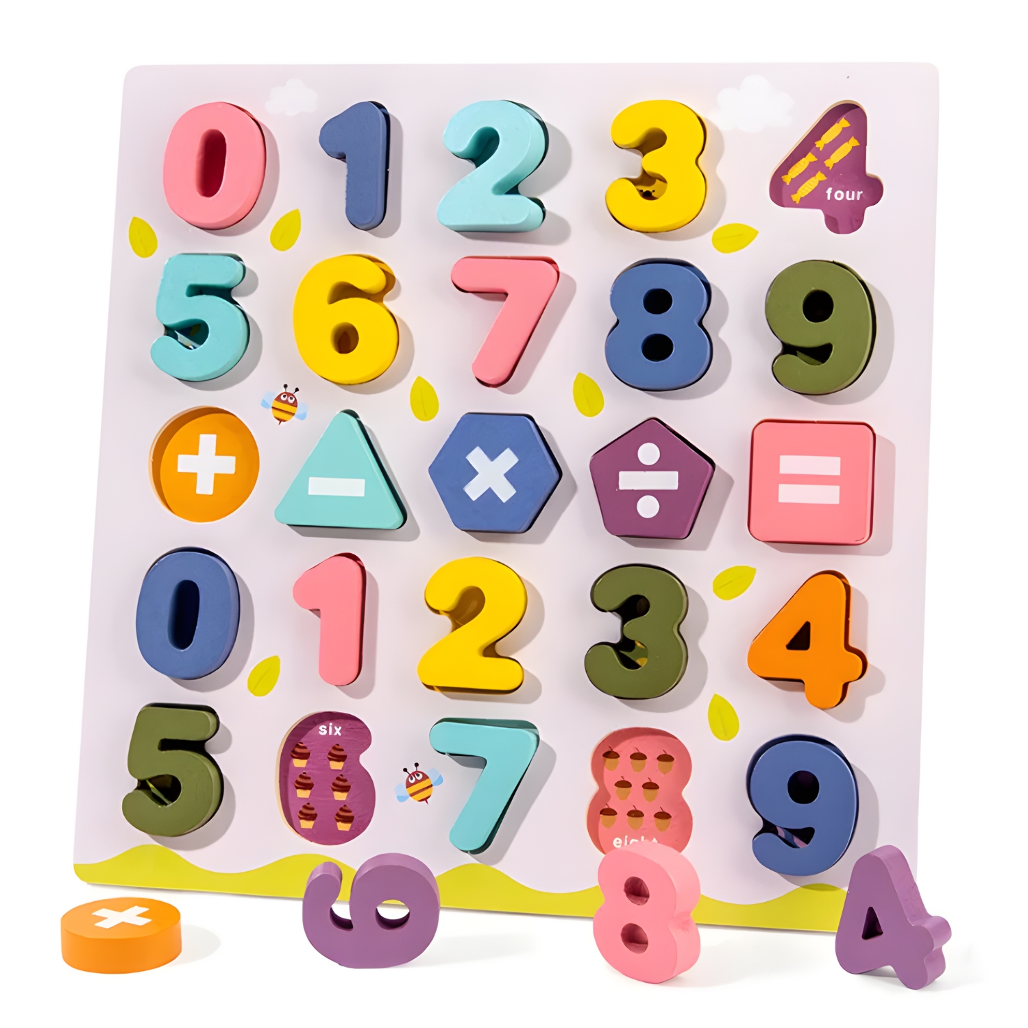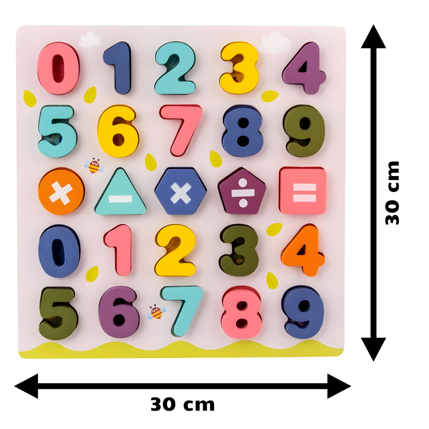 Zanesljiva pomoč pri učenju štetja! Na leseno stojalo smo namestili 20 številk in 5 matematičnih simbolov, ki jih lahko vaš malček uporabi za ustvarjanje matematičnih enačb in učenje tabele množenja.