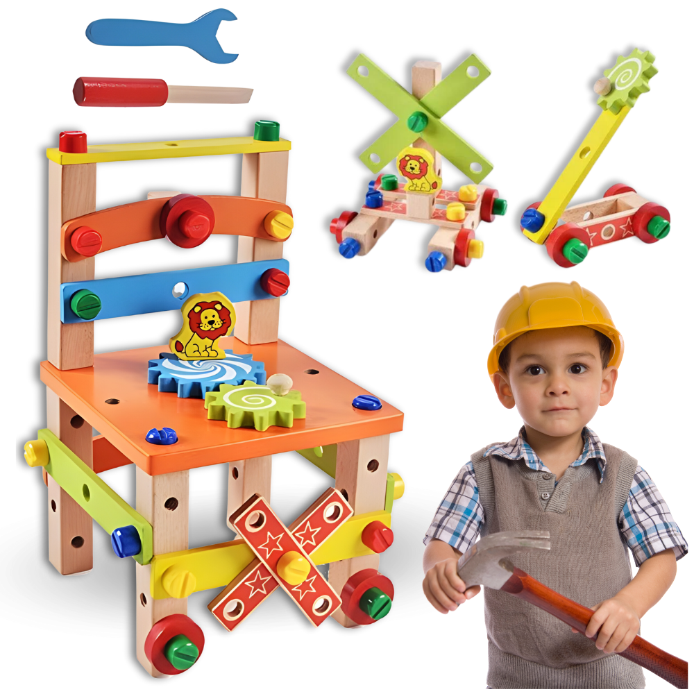 ⚙️ Otrok ima možnost, da sam sestavi stol , in če se mu ta oblika naveliča, lahko kadar koli iz tega ustvari drugo obliko , npr.: avtomobilček, letalo itd. ✅ Edina omejitev je vaša domišljija!
