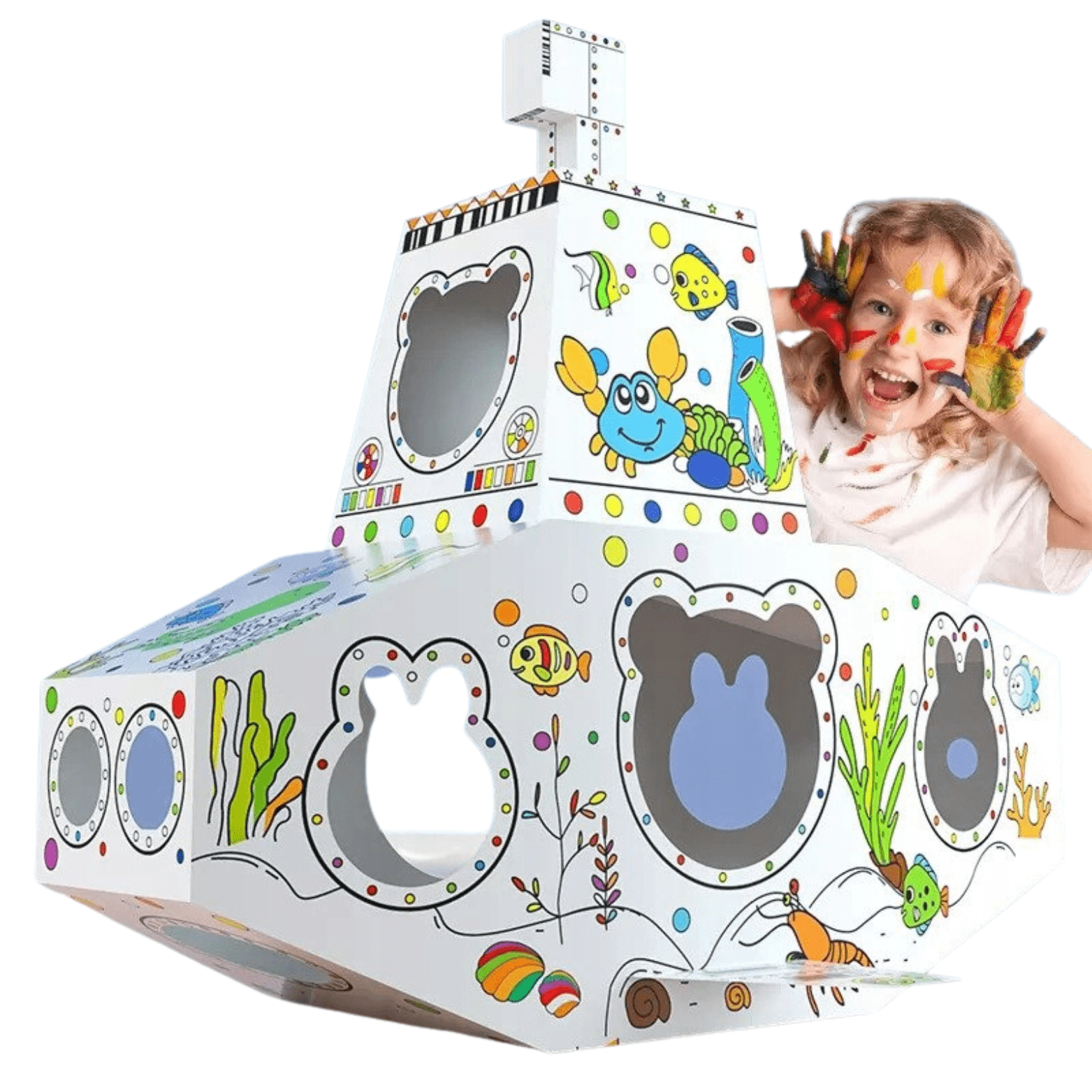 Ta kartonska podmornica je pravo presenečenje za ustvarjalne male umetnike. Ni le igrača, ampak tudi projekt, ki razvija otrokove ročne spretnosti in domišljijo.