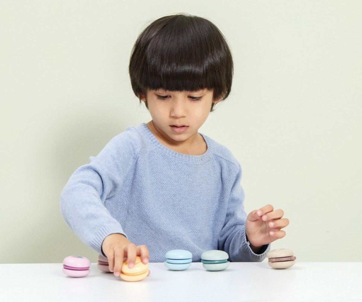 Ta okusen, barvit komplet 6 makronov je popoln dodatek, ki se bo odlično podal v vsako otroško kuhinjo ali trgovino. Kosi so pritrjeni z ježkom, zaradi česar so polnila zamenljiva, kar povečuje igralno vrednost. So prave velikosti in imajo gladke robove – kot nalašč za majhne roke. Ta igrača razvija ustvarjalnost, socialne veščine in spodbuja igro vlog, hkrati pa podpira razvoj fine motorike pri otrocih.