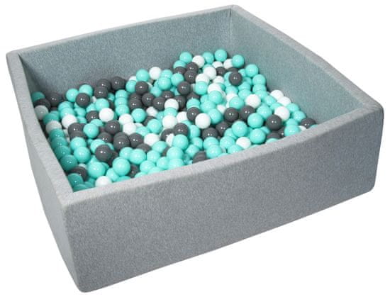 slomart Suhi bazen z 600 žogicami, 120×120 cm; barve: bela, modra, roza, siva, turkiz.