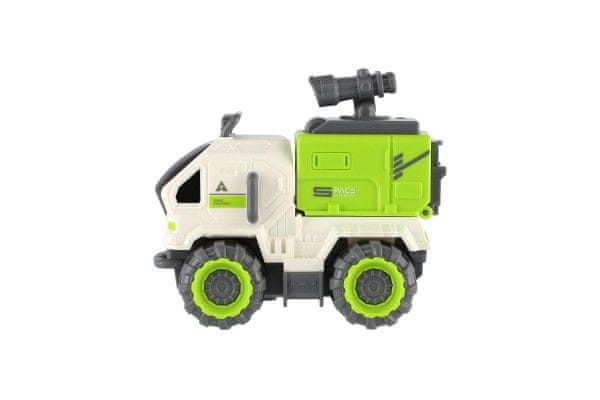 Hurrah vesolju! Astronavti ne potrebujejo le rakete, temveč tudi vesoljski avtomobil, ki jim pride prav pri raziskovanju planetov in različnih teles v vesolju. Avtomobil se zaradi vztrajnika pelje kot veter na dirki, za svoje delovanje pa ne potrebuje nobenih baterij. Velikost avtomobila: 7 × 10 cm Primerno za starost od 3 let dalje