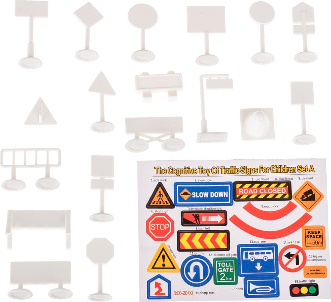 Podloga je zelo tanka in lahka, zato jo lahko brez težav vzamete s seboj na pot, teksturirana površina, vodoodporna, vključno z različnimi prometnimi znaki, tako da lahko vaš otrok ustvari svoje mesto, in mu tako pomaga pri učenju osnovnih pravil v cestnem prometu, lahko se uporablja namesto odeje za piknik, enostavno čiščenje – samo obrišite z vlažno krpo, komplet vsebuje: 18× različne prometne znake, 18 nalepk z znaki, 1× penasto podlogo 130 × 100 cm.