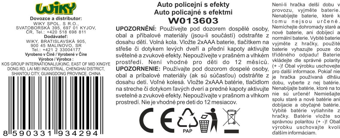 Policijski avto z učinki. Velikost 15 cm. Celoten opis