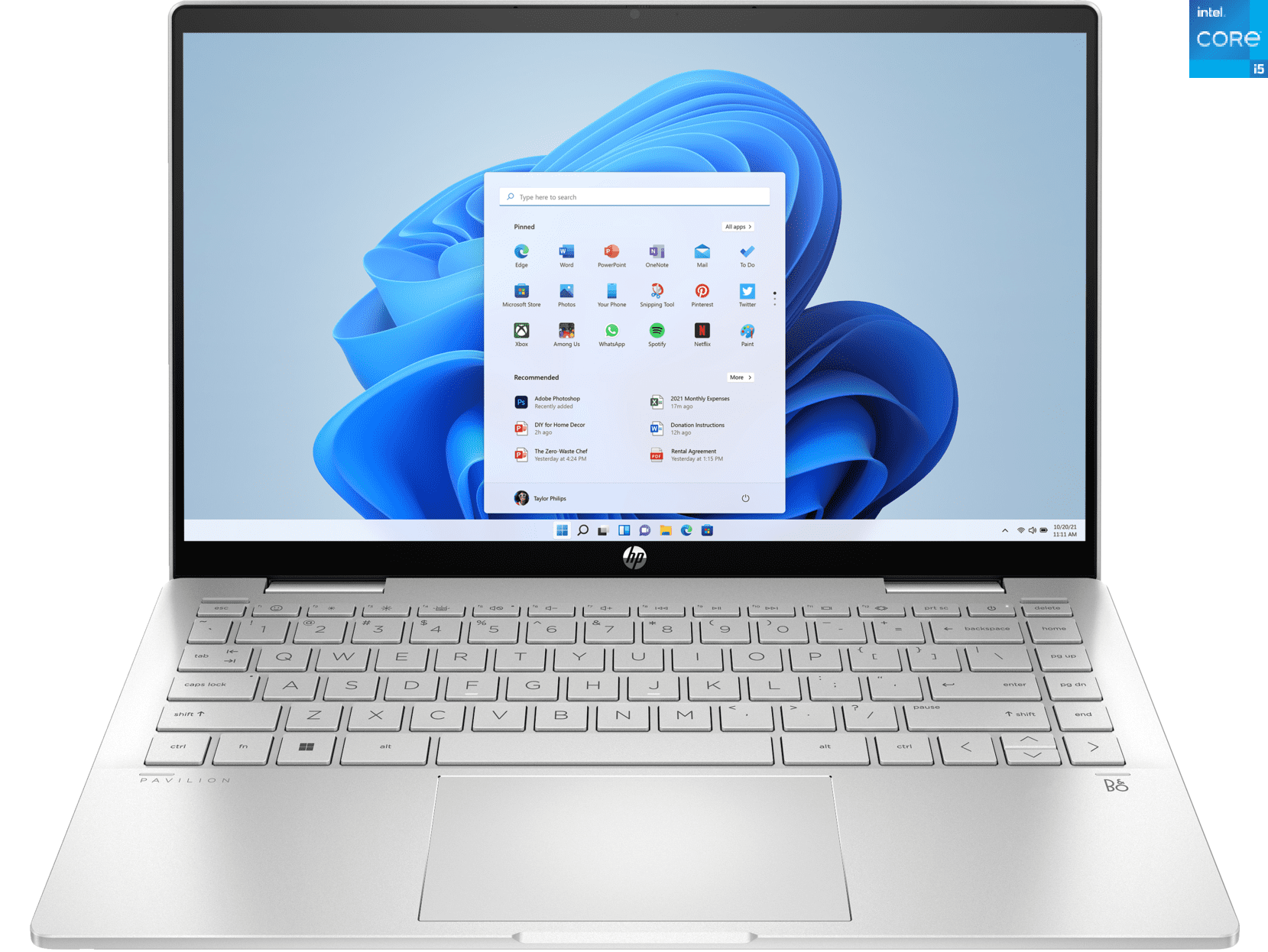 Poleg vrhunske zmogljivosti se HP Pav X360 ponaša s kakovostnim ohišjem, zaslonom na dotik in vsemi potrebnimi priključki za učinkovito delo. Opremljen je z USB-A in USB-C priključki, HDMI priključkom za povezovanje z zunanjimi zasloni in kombiniranim priključkom za slušalke in mikrofon. Odlično povezavo z omrežjem omogoča vgrajen kombinirani vmesnik Realtek Wi-Fi 6E AX211.