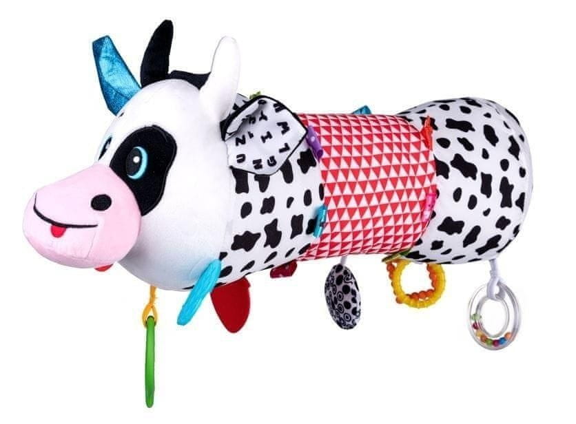 Ta mehak valjček v obliki krave, ki je popoln za podporo vašega dojenčka na trebuščku, je poln presenečenj. Ima šumeča ušesa, gumijasta in plastična grizala, ropotuljico z barvnimi kroglicami in piskač. Različne teksture materialov spodbujajo dojenčkova čutila vida in dotika.