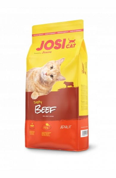 JosiCat Tasty Beef bo zadovoljil brbončice malih ljubiteljev govedine. Zahvaljujoč skrbno uravnoteženi formuli JosiCat Tasty Beef vsak dan zagotavlja vsa potrebna hranila za mačke v zaprtih prostorih in na prostem.