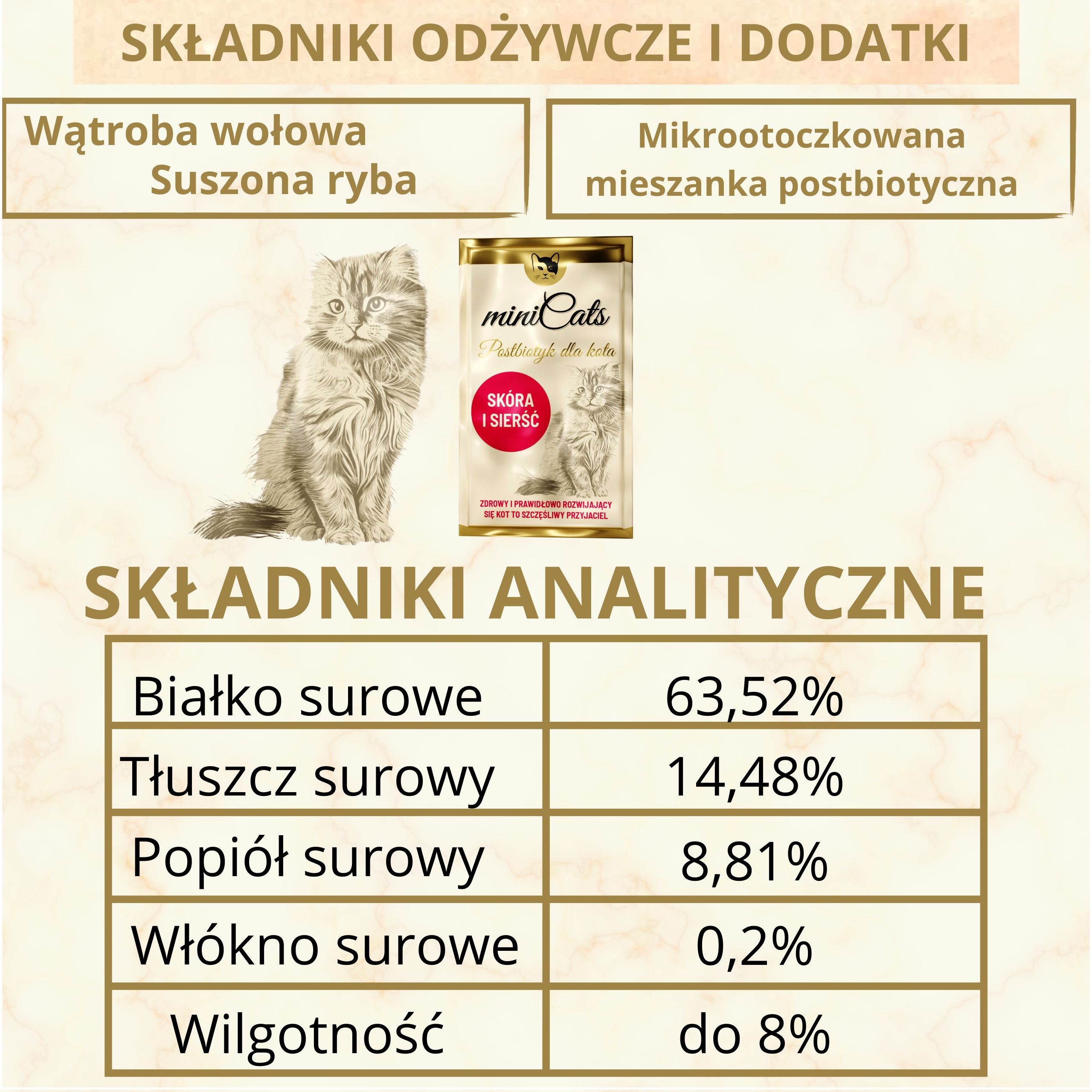 ❤️ miniCats POSTBIOTIK ZA MAČKE – KOŽA IN DLAKA 2g je napreden postbiotik, ustvarjen posebej za mačke, ki podpira regeneracijo kože in dlake.