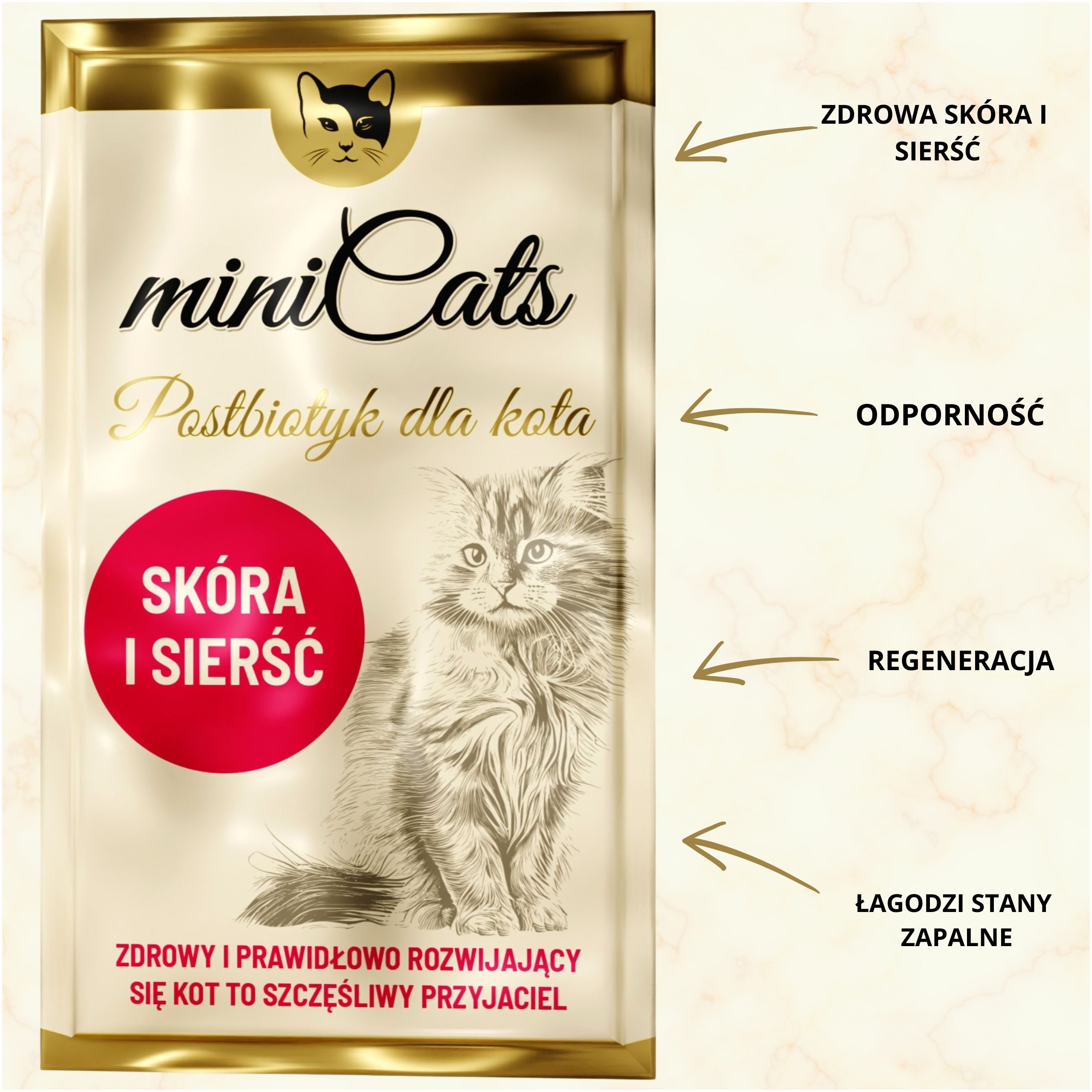 Poskrbite za zdravje in lep videz svoje mačke! Kupite zdaj miniCats Postbiotic Skin and Coat in zagotovite svojemu ljubljenčku celovito nego!