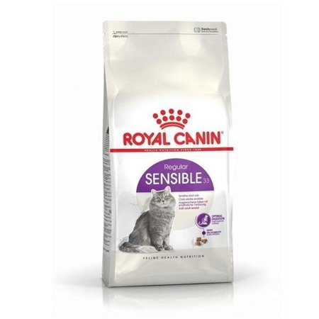 ROYAL CANIN REGULAR SENSIBLE 33 je suha, popolna hrana za odrasle mačke , starejše od 1 leta, ki imajo občutljiv prebavni sistem .