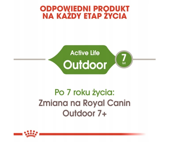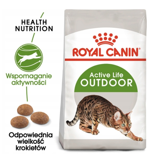 ROYAL CANIN Outdoor Adult je popolna suha hrana, posebej zasnovana za odrasle mačke, ki večino časa preživijo na prostem. Njena edinstvena formula je bila razvita z mislijo na telesno aktivne mačke, ki imajo povečane potrebe po energiji. Visoka vsebnost kalorij pomaga vzdrževati ustrezno raven energije, hkrati pa krepi naravno obrambo telesa. Posebej izbrane omega-3 maščobne kisline (EPA in DHA) podpirajo zdrave sklepe, kar je še posebej pomembno za mačke, ki se premikajo po raznolikem terenu. Poleg tega formula hrane spodbuja zdravo kožo in dlako, edinstven antioksidativni kompleks pa podpira imunski sistem. Skrbno izbrane sestavine pomagajo tudi zmanjšati nastajanje kepic dlake, kar olajša naravno izločanje pogoltnjene dlake. ROYAL CANIN Outdoor Adult je uravnotežena prehrana, ki popolnoma ustreza potrebam aktivnih odraslih mačk, ki živijo na prostem.