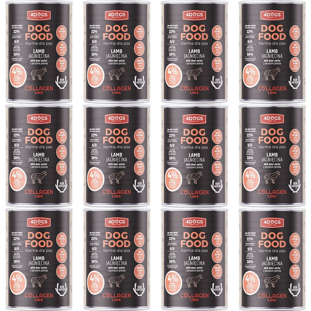 Linija 4DOGS Collagen je popolna mokra hrana, ustvarjena z vsakodnevno prehrano psov v harmoniji z naravo. Vsaka pločevinka je kombinacija visokokakovostnih sestavin, preproste formule in dodatka naravnega kolagena, ki podpira sklepe, kožo in dlako vašega psa.