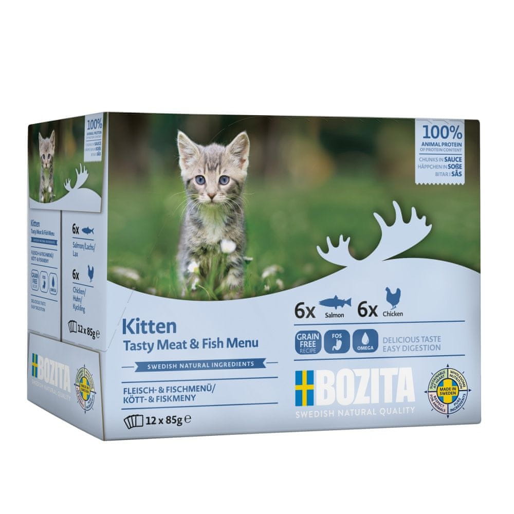 Bozita Cat Kitten koščki v omaki s piščancem, žepek 85 g (12 pakiranj)