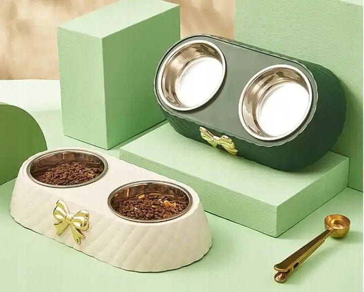 DVOJNA SKLEDA ZA MAČKO ALI PSA Z GLAMOUR PODSTAVKOM ZA VODO IN HRANO 2 × 250ml Barva: Bela VISOKA KAKOVOSTNA Dvojna skleda za mačko, narejena iz kvalitetnega materiala, ki ga je enostavno vzdrževati. Popolnoma se obnese za serviranje tako suhe kot mokre hrane in vode. Priročno ga lahko izvlečete, ne da bi morali dvigniti celotno posodo. Izgleda zelo estetsko in se popolnoma prilega kateri koli notranjosti. Osnova je v nežni in univerzalni barvi, ki doda čar. PREDNOSTI: Popoln za serviranje tako mokre kot suhe hrane in vode Elementi niso trajno povezani Popoln za male živali Varen za zdravje vaših hišnih ljubljenčkov Protizdrsna podlaga Pritegne pozornost s svojim atraktivnim, edinstvenim videzom Univerzalne barve VAŠ LJUBLJENČEK BO NAVDUŠEN! Dvojna mačja skleda je nepogrešljiv kos opreme vsakega ljubljenčka. Naša dolžnost kot odgovornega lastnika je, da svojim najmlajšim zagotovimo predmete, ki poleg estetskega videza v celoti izpolnjujejo svojo osnovno funkcijo. Te očarljive sklede v obliki glave z ušesi ne bodo pustile dvoma o svojem namenu, hkrati pa bodo izjemen okras vsake notranjosti. Primerne so tako za mačke kot za druge male živali. FUNKCIONALNO IN ŠARMANTNO Lahka, nagnjena in Oblikovana podlaga bo vašemu ljubljenčku zelo olajšala prehranjevanje. To je popolna rešitev, če cenite funkcionalnost, privlačen videz in radi razvajate svojega ljubljenega ljubljenčka. PARAMETRI: Barva podstavka: bela Osnovni material: plastika, plastika, kovina Število posod: 2 Premer posode na vrhu: 12 cm Premer dna posode: 9 cm Širina podstavka: 34 cm Maksimalna višina: 7 cm Protizdrsni elementi: da