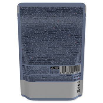 Popolna in uravnotežena mokra hrana za odrasle mačke od 1. leta starosti. Sočni fileji z govedino v okusni omaki so odlična izbira za zahtevne mačje brbončice. S svojo fino teksturo in visoko okusnostjo bo zadovoljila tudi izbirčne mačke.