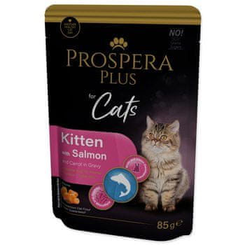 Popolna hrana za mačke, stare od 4 tednov do 1 leta, v obliki kapsule z lososom in korenjem v omaki.