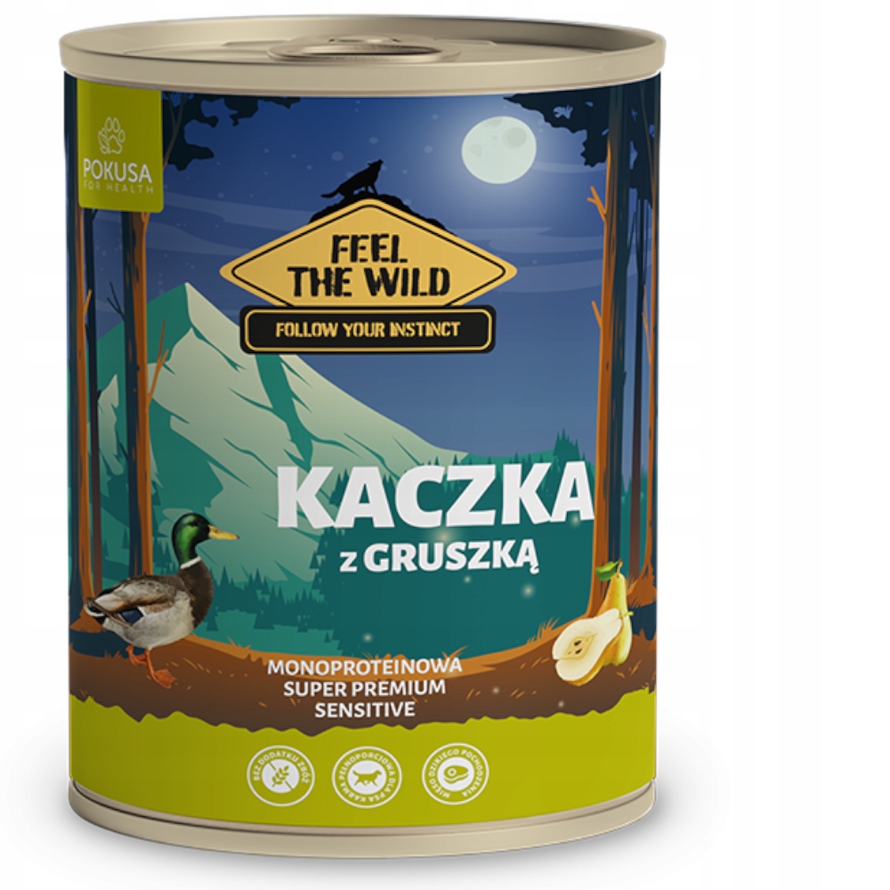 Popolnoma sestavljena jed iz račjega mišičnega mesa v idealnih razmerjih z dodatkom src, jeter, želodčkov in izvrstne hruške. Popoln obrok, narejen iz naravnih sestavin, brez umetnih arom, konzervansov ali barvil. Zahvaljujoč nežni obdelavi je ta mokra hrana v lastnem soku izjemno aromatična, okusna in lahko prebavljiva. Uporabljena ena sama vrsta beljakovin omogoča uporabo v izločilni dieti, pa tudi za pse z občutljivim prebavnim sistemom.