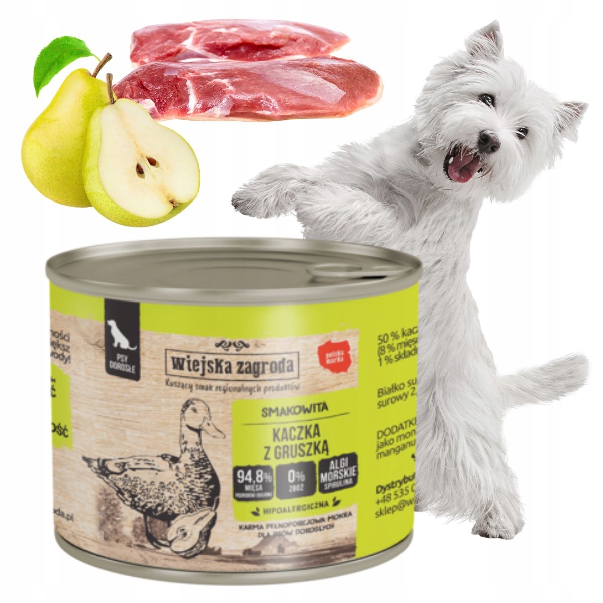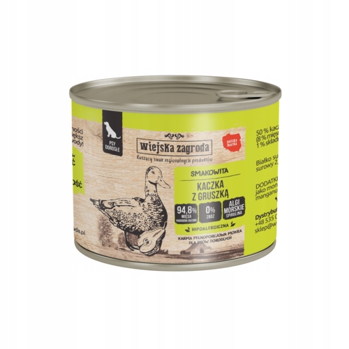 ✴️ Sestava:50% raca (21% meso, 19% vratovi, 5% jetra, 5% srca), 20% puran (8% meso, 8% jetra, 4% želodci), 24,8% račja in puranja juha, 4% hruške, 1% minerali, 0,1% lososovo olje, 0,1% spirulina.