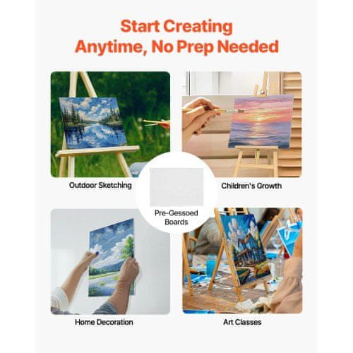 Platna za slikanje nudijo vsestransko in zanesljivo površino za umetnike vseh stopenj od otrok do profesionalcev. Ta komplet je idealen za širok spekter slikarskih tehnik vključno z akrilom oljem akvarelom in skiciranjem zaradi česar je primeren tako za individualne projekte kot skupinske umetniške dejavnosti. Plošče so pripravljene za uporabo takoj po odprtju zagotavljajo gladko in trpežno površino ki izboljšuje živahnost barv in podpira ustvarjalni izraz.